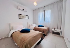 This modern apartment consists of an open plan kitchen and dinning area. The main bedroom has en-suite shower room. There are A/C units through out the apartment, a door phone to allow access to the property, covered parking and a communal pool.