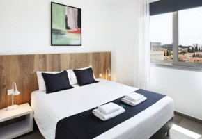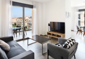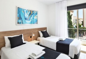 Located on the fourth floor of Building 7, this apartment offers bright and airy living spaces with a modern open-plan design. The living and dining area extends onto a spacious balcony overlooking the pool, creating a perfect setting for relaxation.
