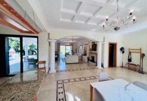 This exclusive newly renovated 4 bedroom beachfront villa features a spacious living room with open plan fully equipped kitchen with granite work tops and dining room finished to high standards.